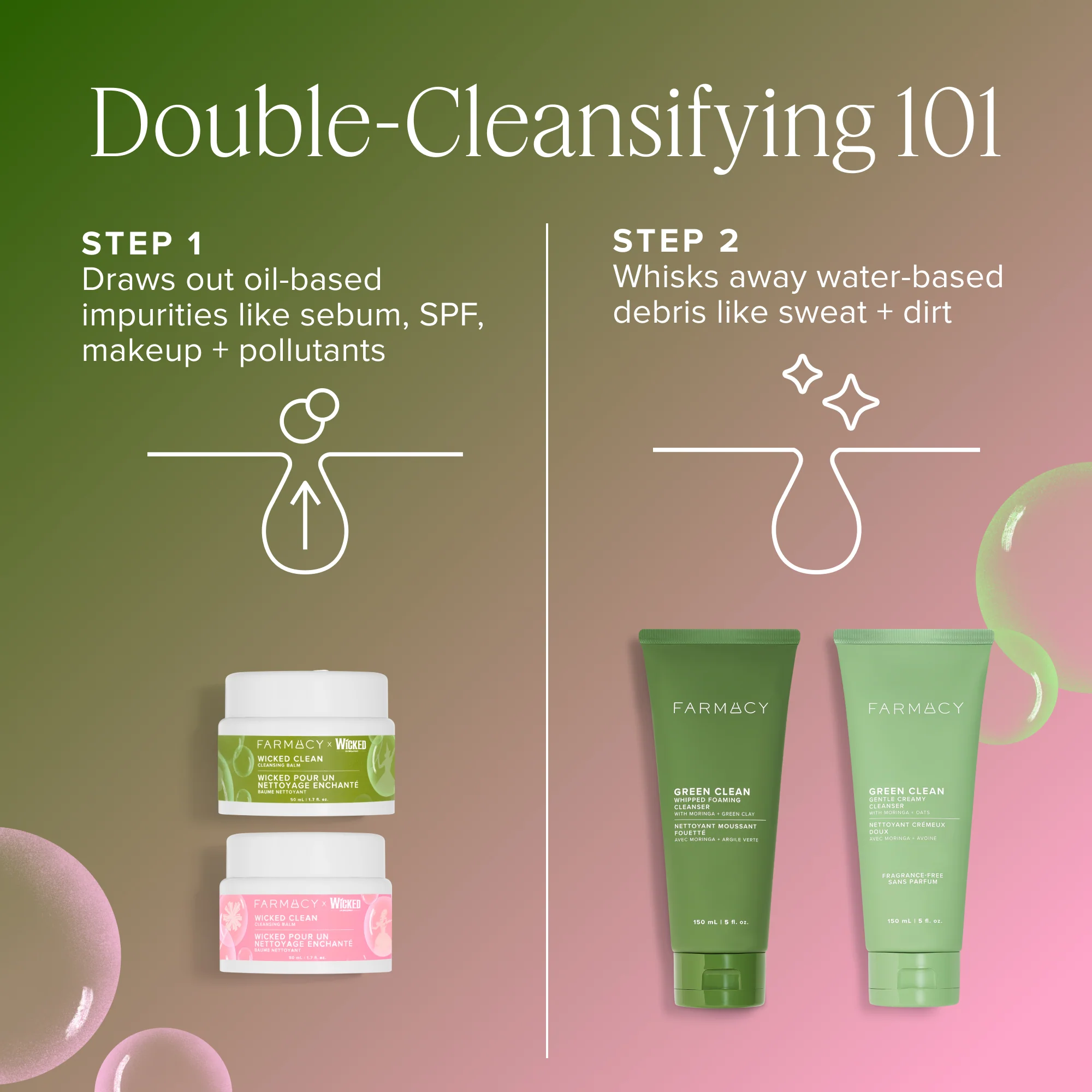 A gentle yet powerful, limited-edition cleansing balm made in collaboration with WICKED! on Broadway. Featuring one green and one pink version of our cult-favorite balm, which magically transforms into a milky oil that effortlessly melts away makeup, SPF, excess oil + impurities. Oz's best super greens-powered formula leaves skin smoothified, hydrated + soft.